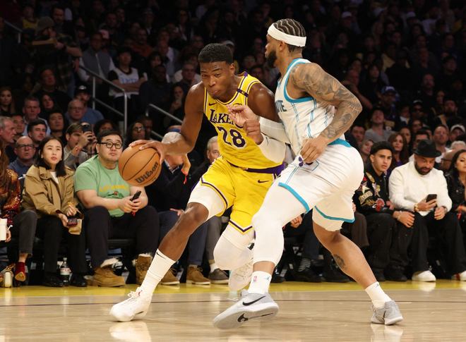 这就涉及到一个被湖人球迷热议了近三年的问题,八村垒对于湖人来说,到底是鸡肋还是必需品。本赛季至今,八村垒为湖人首发出战了22场比赛,场均得到14分3.9篮板,投篮命中率53.6%,三分球命中率46.2%,他的优点是身材尺寸足,可以在防守端顶内线,进攻端是湖人比较靠谱的外线投手,接球投篮效率不错,此前湖人击败猛龙就是靠他接詹姆斯传球投中绝杀三分,可以说,八村垒是现在湖人阵容里,为数不多可以为詹姆斯和东契奇拉开空间的球员。